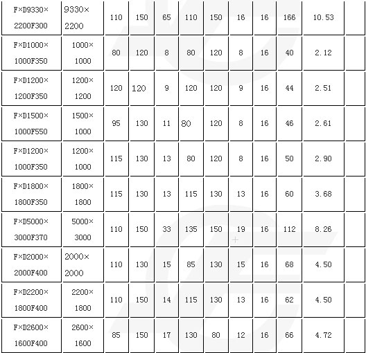 F×D400×200F250 | 400×200 | 40 | 110 | 4 | 50 | 110 | 2 | 12 | 20 | 0.63 | |