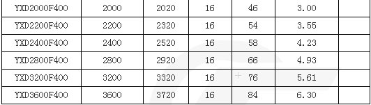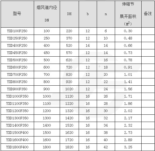 (2)YXDB800F250表示圓形非金屬補償器,長期工作≤200°C,內(nèi)徑為DN800mm,法蘭連接補償器長度250mm。