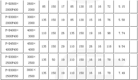 ?。?)FXDA4500×4000F400表示方形非金屬補償器,長期工作≤100°C,內(nèi)壁為4500×4000mm,法蘭連接產(chǎn)品長度400mm。